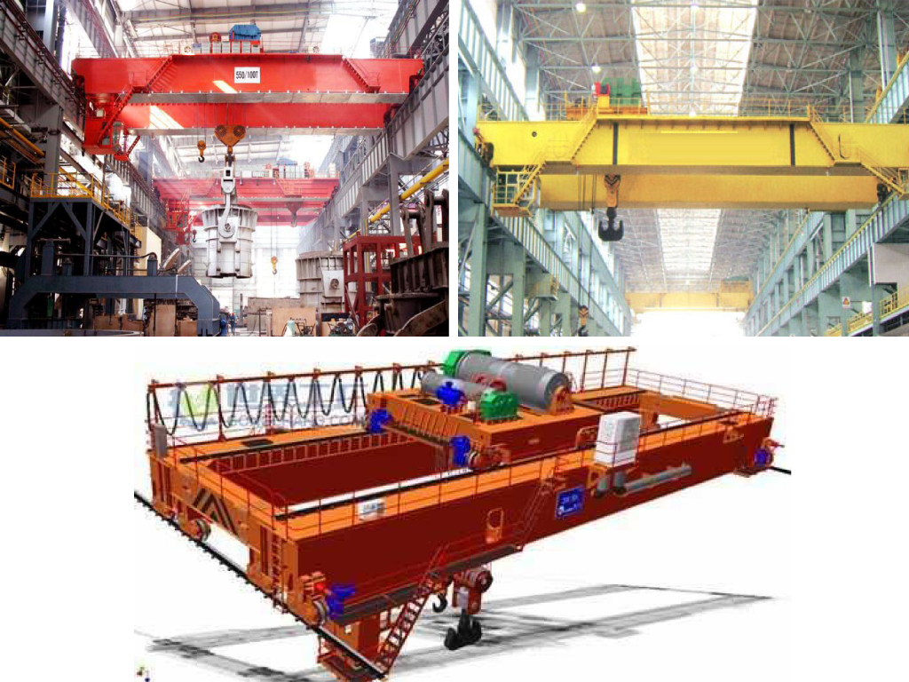 鑄造起重機(jī)主要用于轉(zhuǎn)爐加料跨向轉(zhuǎn)爐兌鐵液,在精煉跨將鋼液吊至精煉爐或在鋼液接受跨將鋼液吊運(yùn)到連鑄大包回轉(zhuǎn)臺上。它是煉鋼連鑄工藝中的主要設(shè)備之一。